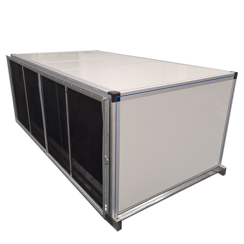 空气过滤段的功能是对空气的灰尘进行过滤。有粗效过滤器和中效过滤器两种。中效过滤器段通常用无纺布的袋式过滤器。粗效过滤器段有板式过滤器和无纺布的袋式过滤器两种。