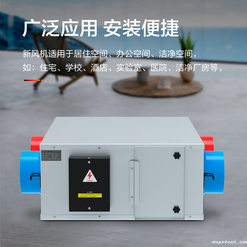 1. 新风换气机为房间用带有热回收装置的小型换气设备。选用主要控制参数为风量、静压损失、出口全压、输入功率、有效换气率、交换效率、噪声等。