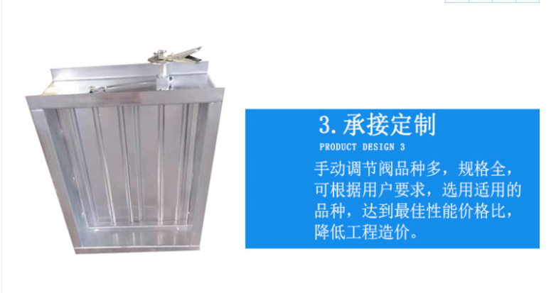 (3)该调节阀分手动、电动,按所用材料分:铁板、镀锌板、铝合金板、不锈钢板四种,阀体结构及规格尺寸相同