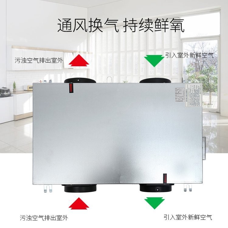 吊顶式双向流新风换气机 低噪声全热交换新风机家用全屋通风换气中央新风系统双向流