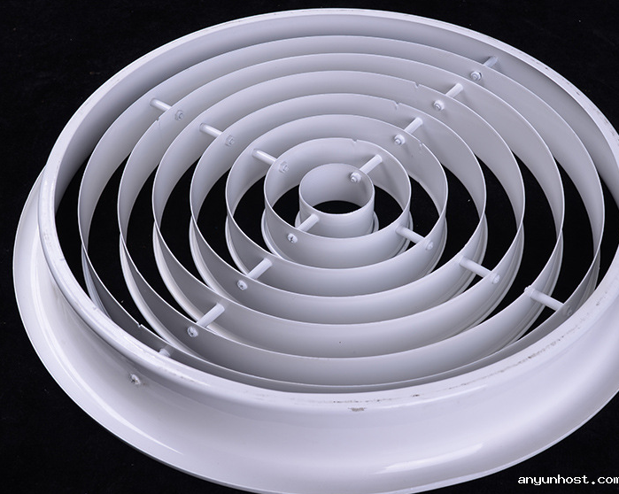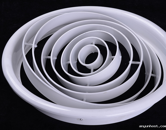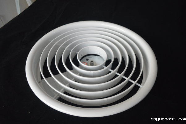 结构外观为圆形,内心有多个圆环组成,能可上下45度调整风口阻力小,适用于剧院,体育馆及楼层较高的场所,可附加风量调调节阀。产品外形美观外。表面采用静电喷塑,烤漆或者阳极处理。选用优质加厚铝合金材料,更加耐用