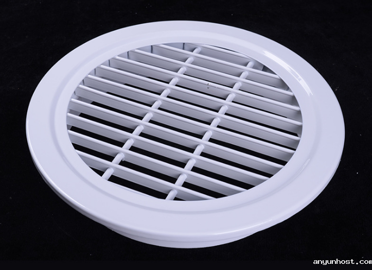 圆形单层百叶风口是单向排列的,通常采用分体式多叶风量调节阀调节风口的风量。叶片的安装角度可以根据需要改变。对于H型可调垂直仰角或俯角;对于垂直型,水平扩散角可以调整。风口规格由颈部尺寸w×h表示。虽然单层格栅风口也可以用作侧供气口,但其空气动力学性能比双层供气口差。在工程上,它经常在回风口使用,有时与铝合金网式过滤器或尼龙滤网一起使用。