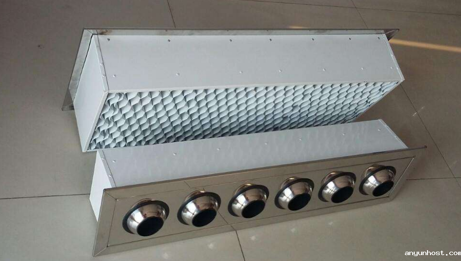 根据所用射流部件的不同类型,有AR型矩形消声风口和ADR型矩形消声风口,分别如图1a和1b所示。在氩型矩形消音风口的每个射流部件的出口处安装一个小喷嘴,不仅提高了射流性能,而且起到了装饰作用。当ADR型矩形消声风口用于顶部送风时,在每个射流部件的出口处可以设置一个锥形导叶,使一部分气流水平送出,一部分气流垂直向下送出。矩形消音风口主要用于大跨度工业和公共建筑中空调空间的上侧送风,可以设置在一侧或两侧。气流分布形式包括单侧上进料和上进料和下进料,双侧上进料和下进料,双侧上进料和下进料。对于公共建筑,“上部送风和上部回风”使用更频繁。
