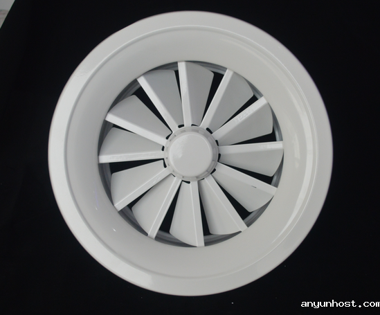 (7)旋流风口发出旋转射流,具有诱导比大、风速衰减快的特点。它可用作空调通风系统中的高值、低速。大温差送风可以减少风口数量。它可以安装在天花板或天花板上,并可用于3米以内的低空间。也可用于两种高度的大面积送风,高度甚至可达10米以上。